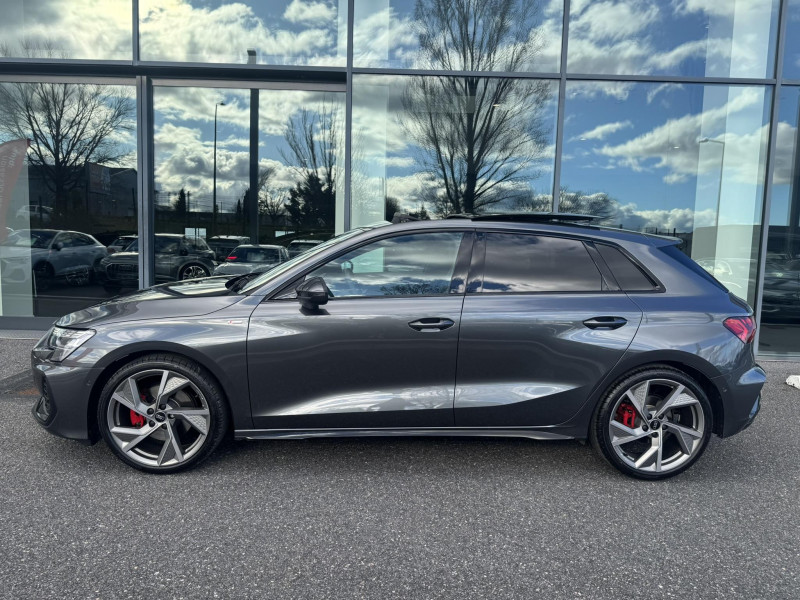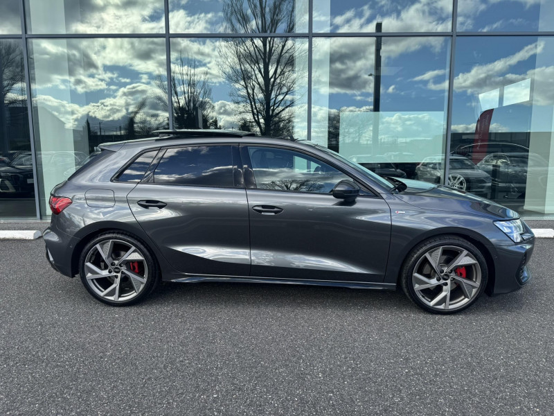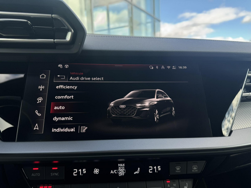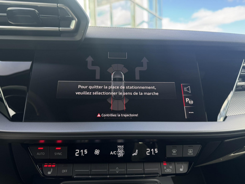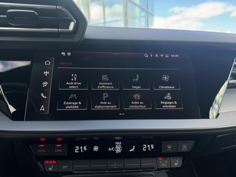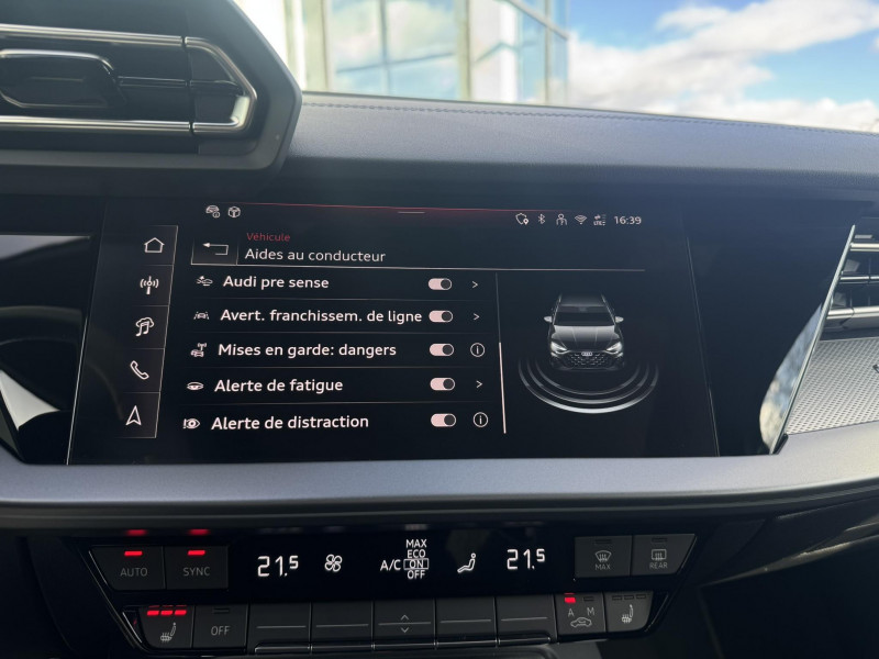 applications décoratives en aluminium spectre foncé (au tableau de bord) / audi park assist plus avec caméra 360° l'aide au stationnement plus peut aider à entrer et à sortir des places de stationnement qui peuvent être limitées par des véhicules ou des objets. le système prend le contrôle de la direction, de l'accélération, du freinage et du changement de vitesse / boîte automatique s tronic 7 vitesses / jantes en alliage léger 18", 5 branches en y gris graphite, tournées brillantes, 8,0 j x 18" 225/40 r18 / pack extérieur s line / pack intérieur s line / phares à led avec clignotants dynamiques ar / rétroviseur intérieur jour/nuit automatique sans encadrement / rétroviseurs extérieurs réglables, dégivrants, rabattables électriquement avec fonction rabat automatique / volant cuir sport multifonctions plus 3 branches avec méplat et palettes de commande au volant / 2 ports de charge usb ar / accoudoir central coulissant en longueur, avec inclinaison réglable / accoudoir de portière en matière synthétiques / airbags latéraux av et système d'airbags de tête / appel d'urgence & service audi connect / appui lombaire à 4 axes pour les sièges av : réglages électrique, horizontal et vertical / audi drive select / audi hold assist / audi phone box light / audi pre sense front / boîtiers de rétroviseurs extérieurs dans la couleur de la carrosserie / clé confort incluant déverrouillage du coffre par capteur (sans safelock) - accès et démarrage du véhicule mains libres (keyless access) - déverrouillage du hayon via la touche "coffre" de la télécommande ou en simulant un mouvement de pied dans la zone ar du véhicule (ouverture et fermeture). / cléà fréquence radio (sans safelock) verrouillage central "keyless-go" verrouille et déverrouille les portes, le capot de coffre et la trappe à carburant ; incluant ouverture/fermeture confort des vitres / commande de désactivation de l'airbag passager av / contrôle de la traction (tcs) / câbles de recharge pour téléphone portable compatibles apple et android / direction assistée électromécanique, asservie à la vitesse / dispositif de limitation de vitesse / détecteur de pluie et de luminosité / détection de signalisation routière par caméra / ecrous de roues antivol / i-size et top tether pour les sièges ar extérieurs / kit réparation / mmi radio plus / outillage de bord / pare-brise à vitrage acoustique / rappel de ceinture de sécurité avec dispositif ar de détection d'occupation du siège / sièges av réglables manuellement: hauteur et positionnement en longueur, inclinaison de dossier, hauteur des appuie-tête et des ceintures / système start & stop avec récupération d'énergie au freinage / sécurité enfant électrique / tapis de sol av/ar / trousse de secours, triangle de présignalisation et 2 vestes de sécurité / vitrage privacy : lunette ar, vitres de portières ar et vitres latérales ar surteintées