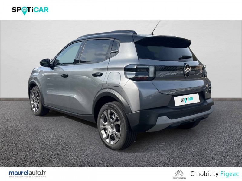 commutation automatique des feux de route / essuie-vitre av automatique (capteur de pluie) / jantes alliage 17" atacamite diamantées / navigation 3d connecté sur écran central 10,25" tactile / pack safety - active safety brake (freinage automatique d'urgence) - alerte active de franchissement involontaire de ligne - alerte attention conducteur - reconnaissance des panneaux de signalisation - régulateur-limiteur de vitesse / 1 prise usb -c sur la planche de bord (charge rapide 3a) / 2 prises usb type-c (charge rapide 3a) en rang 2 / abs, esp / afu, ref / ambiance metropolitan grey - accoudoirs de porte av et ar recouverts de textile moussé avec étiquette "happy tags" (messages positifs), - appui-têtes av réglables en hauteur, - décors sur les panneaux de porte av gris sidérite, - décors sur la planche de bord gris sidérite, - poches aumônières et poches supplémentaires pour smartphone au dos des sièges av / barres de toit noir brillant / boîte manuelle 6 rapports / boîtier télématique: appel d'urgence et citroën assistance les services connect one pendant une période de 10 ans / citroën head up display (affichage tête haute) - tft / décors extérieurs noir brillant (enjoliveurs de montant central et custode) / détection de sous-gonflage / ecran central 10,25 " tactile: système audio 6 hps (dab). apple carplay et android auto sans fil / elargisseurs d'ailes noir mat / enjoliveurs 17" azurite / garnissage tissu noir / tissu city / toile enduite claire avec sièges advanced comfort / lève-vitres ar électriques (descente séquentielle) / lève-vitres av électriques (descente séquentielle) / poignées de portes extérieures noir brillant / recharge sans fil pour smartphone / rétroviseur intérieur électrochrome / sabots de protection av et ar / suspension citroën advanced comfort / tcs (contrôle de la traction) / témoin et alerte de non-bouclage des ceintures av et de débouclage av et ar